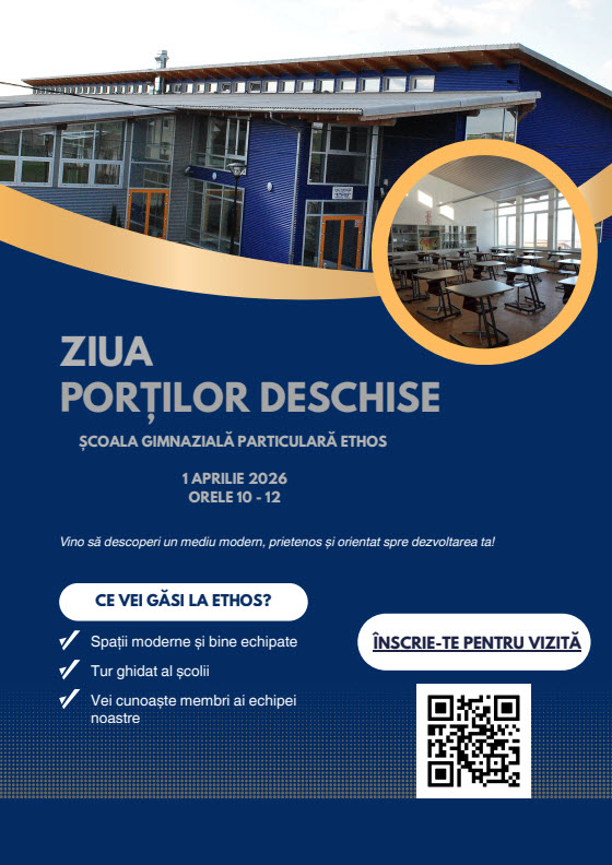 Şcoala noastră are uşile deschise pentru toţi cei care au nevoie de educaţie şi tratează pe fiecare elev în parte ca pe o personalitate unică, încurajându-i dezvoltarea armonioasă şi holistică pe întreaga perioadă de şcolarizare, fără a face discriminări de rasă, etnie sau altă natură. Şcoala Particulară Ethos încearcă să ofere condiţiile optime pentru a-i inspira pe elevi către idealul cristic. Aflati mai multe aici